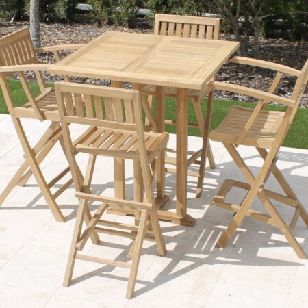 Teak 48in Round Table & 4 Hudson Chairs Set Plus Free Cushion Pads