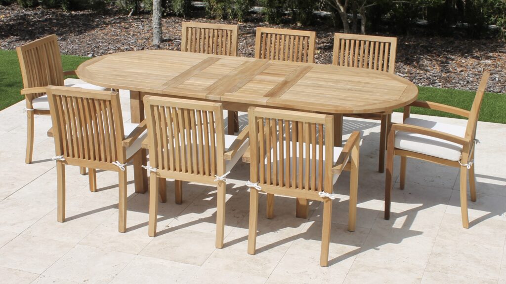 Teak 95in Rectangular Extending Table & 8 Plymouth Chairs Set Plus Free Cushion Pads