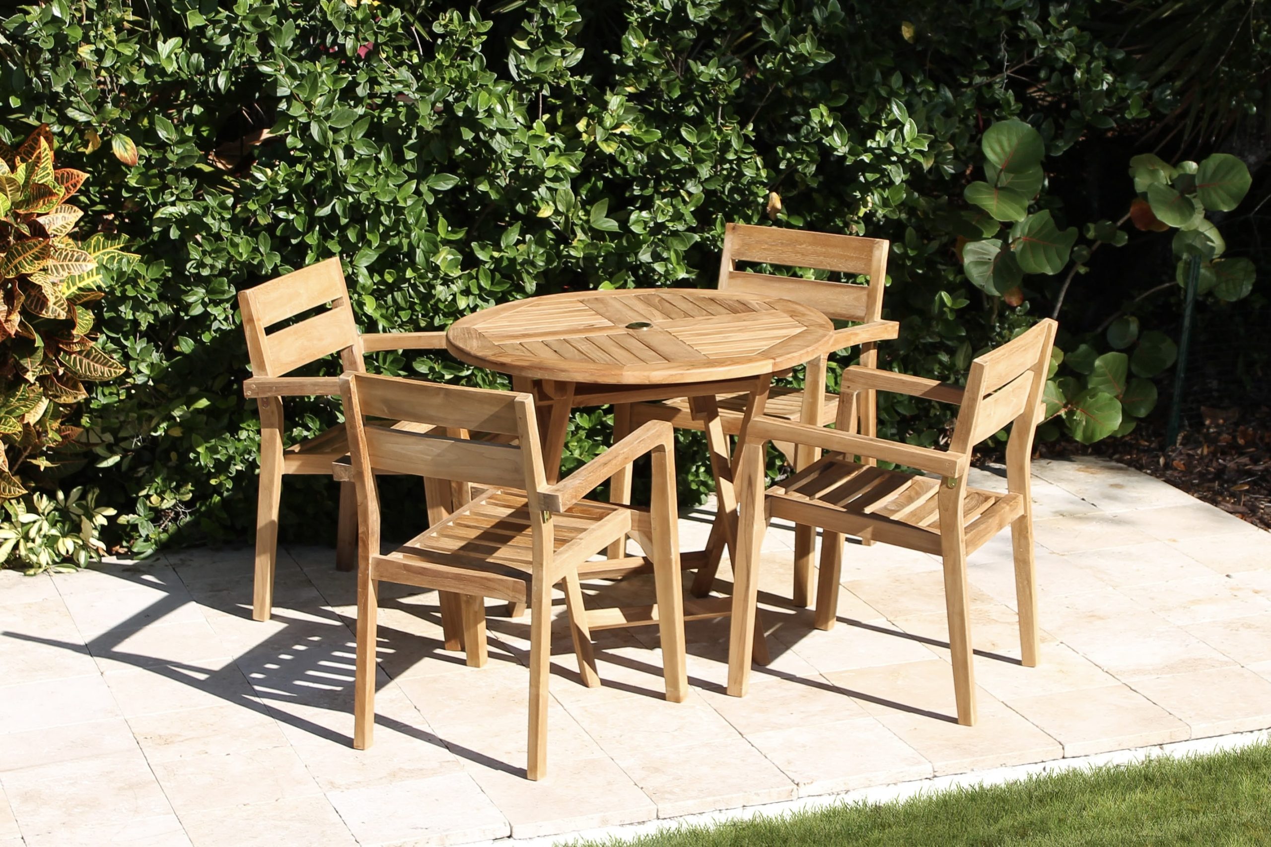 36in Round Folding Table & 4 Malibu Chair Teak Set Plus Free Cushion Pads