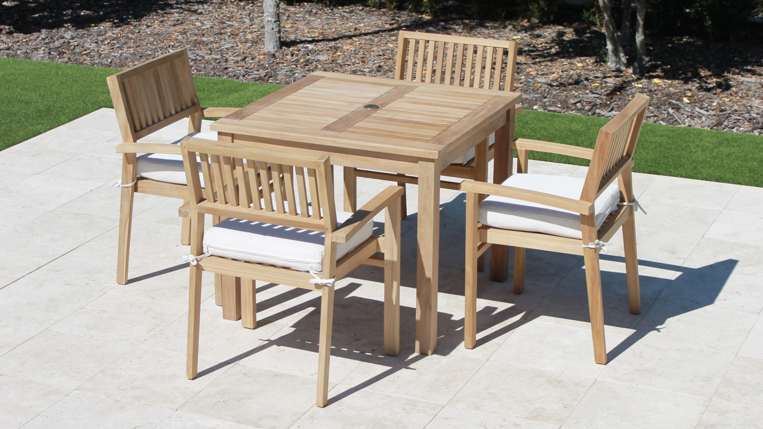 36in Square Table & 4 Cove Chair Teak Set Plus Free Cushion Pads