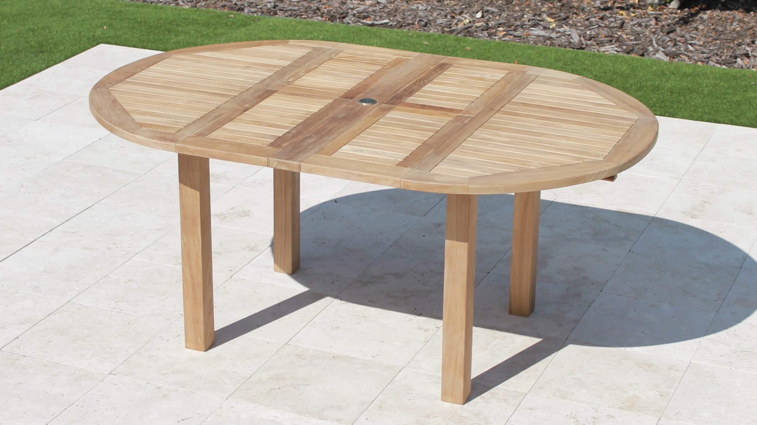 The Teak Table comes with two integral extension leaves that allows the table to be easily adjusted from 47in to 71in in length & fold away under the table for easy storage.