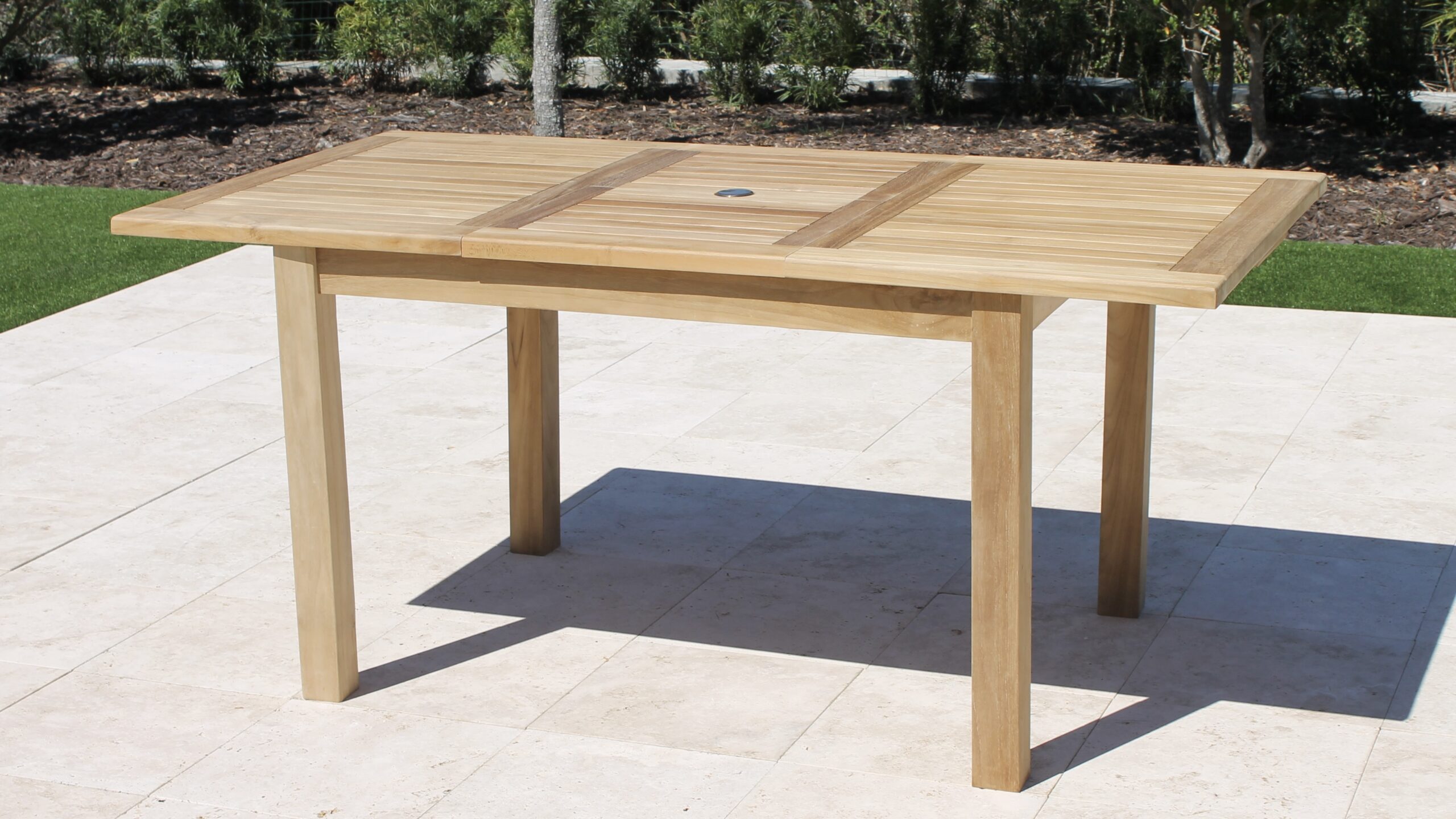 The Teak Table comes with an integral extension leaf that allows the table to be easily adjusted from 48in to 67in in length & folds away under the table for easy storage.