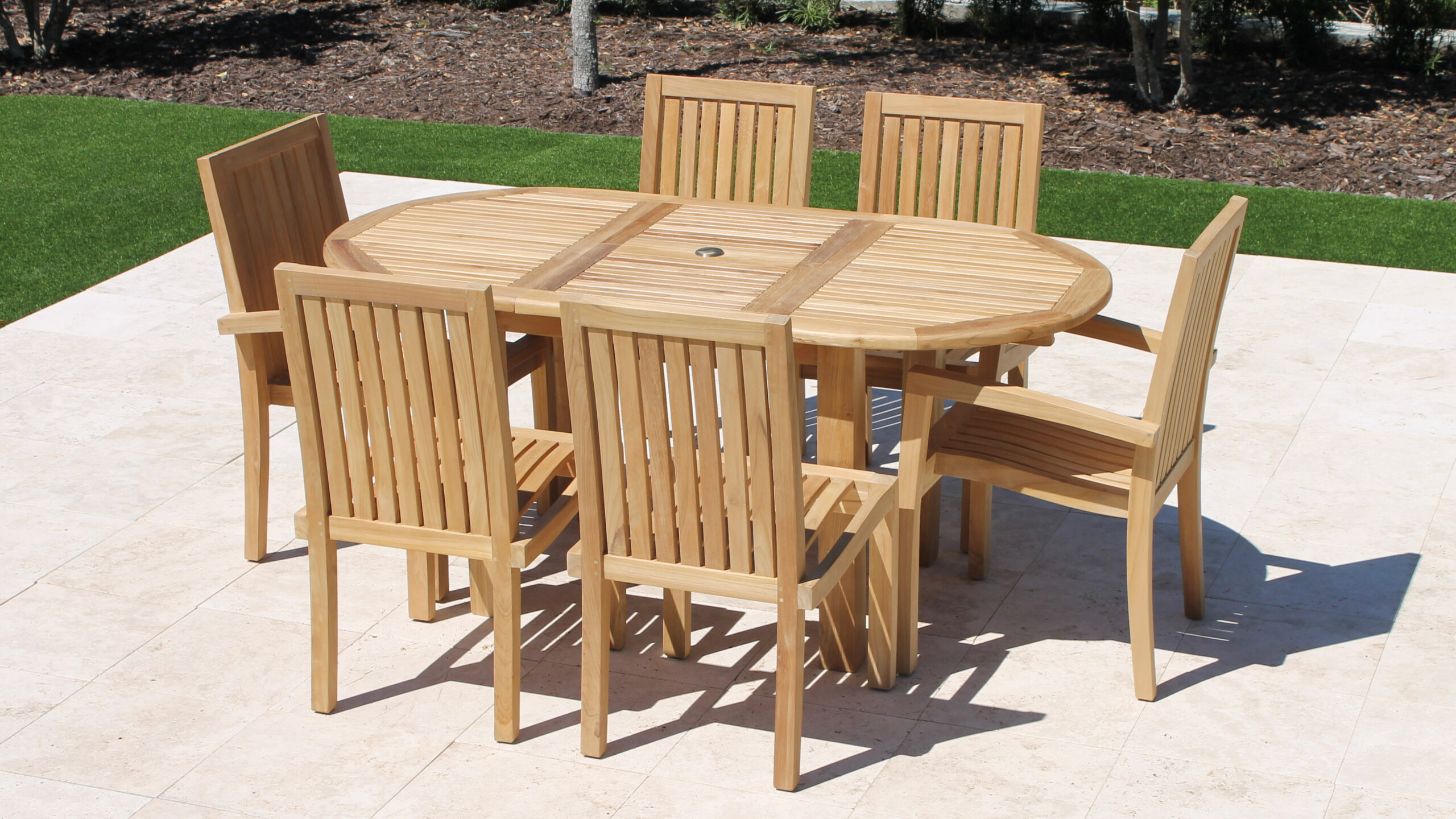 Teak 67in Oval Extending Table & Hudson Chairs Set