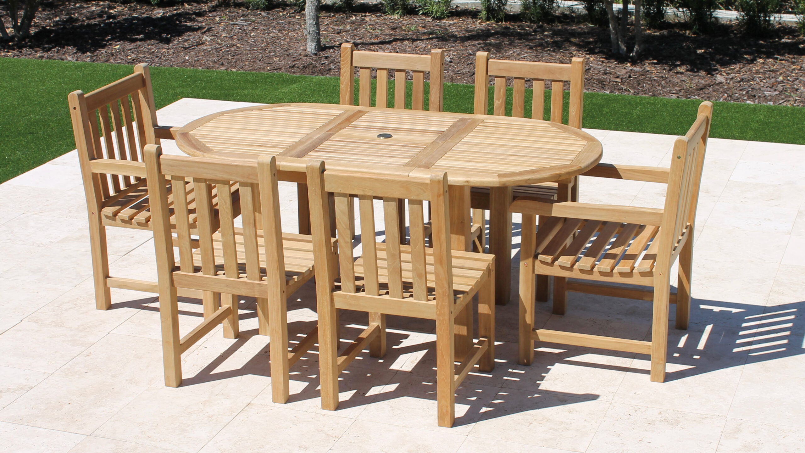 Teak 67in Oval Table & 6 Java Classic Chairs Set