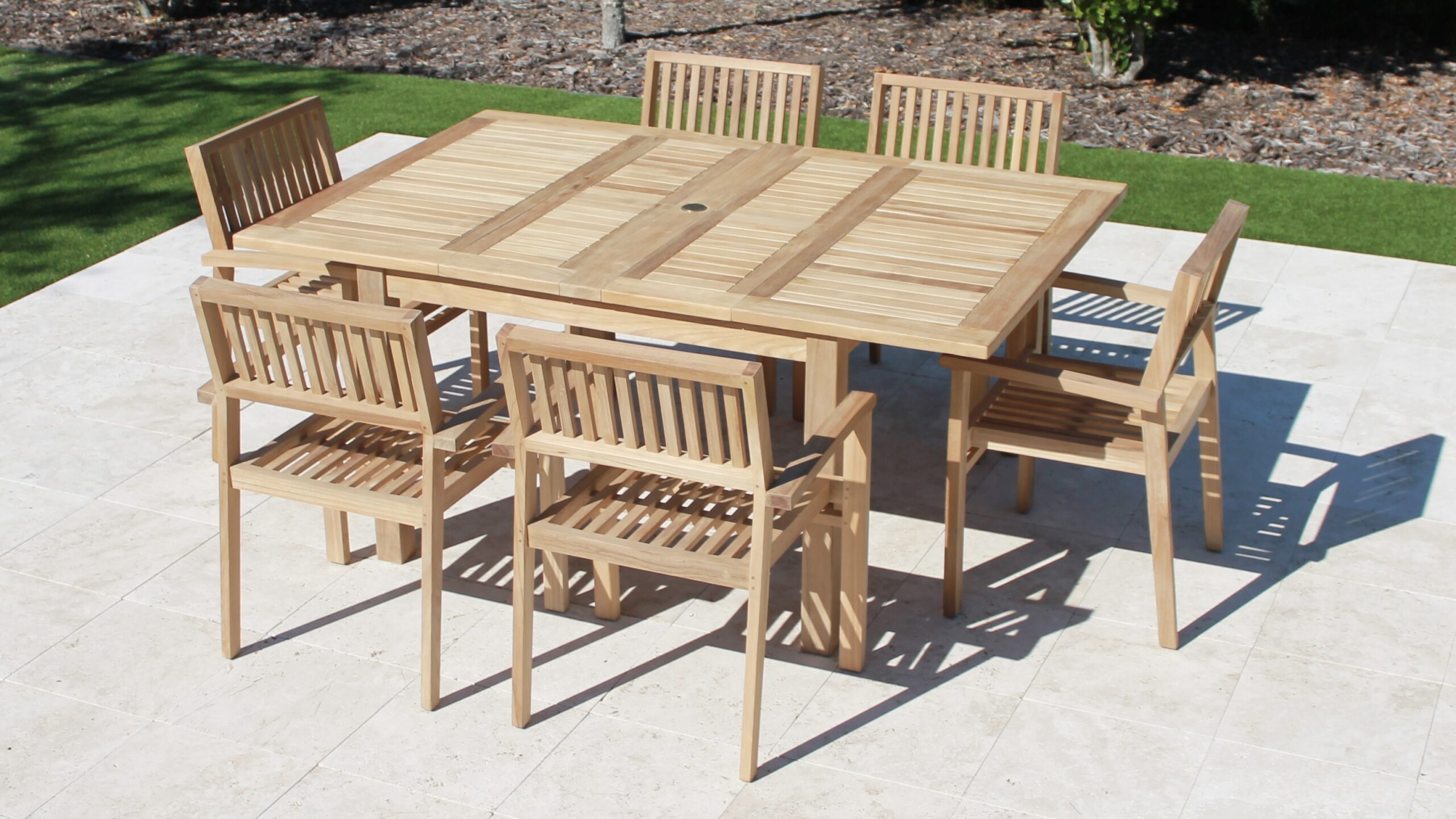 The Teak Table comes with two integral extension leaves that allows the table to be easily adjusted from 47in to 71in in length & fold away under the table for easy storage.